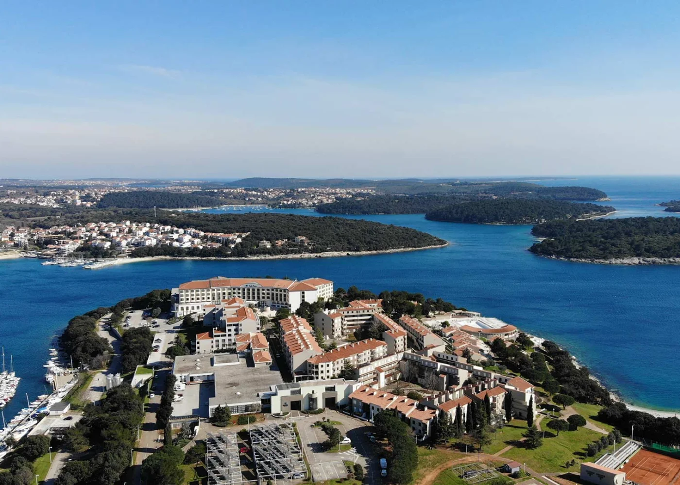 Das komplett renovierte Hotel Park Plaza Histria hat eine traumhafte Lage auf einer Halbinsel im Ortsteil Verudela. Zum Kies-/Felsstrand mit Badeplateaus sind es ca. 50 – 100 m. Das historische Stadtzentrum von Pula ist ca. 5 km entfernt. Eine Haltestelle des öffentlichen Linienbuses befindet sich in der Nähe. Zur Promenade sind es auch nur ca. 50 m. Direkt beim Hotel Park Plaza Histria verläuft eine komplett neu angelegte Einkaufsstraße mit Café, Gallerie, Boutiquen, Restaurants, Pizzeria, Supermarkt und Souvenirshop.