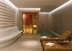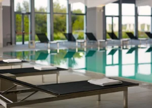 Beheiztes Meerwasserhallenbad, Meerwasserswimmingpool mit Poolbar, Sauna, Dampfbad, Fitnesscenter, Massage und Beauty Zentrum.